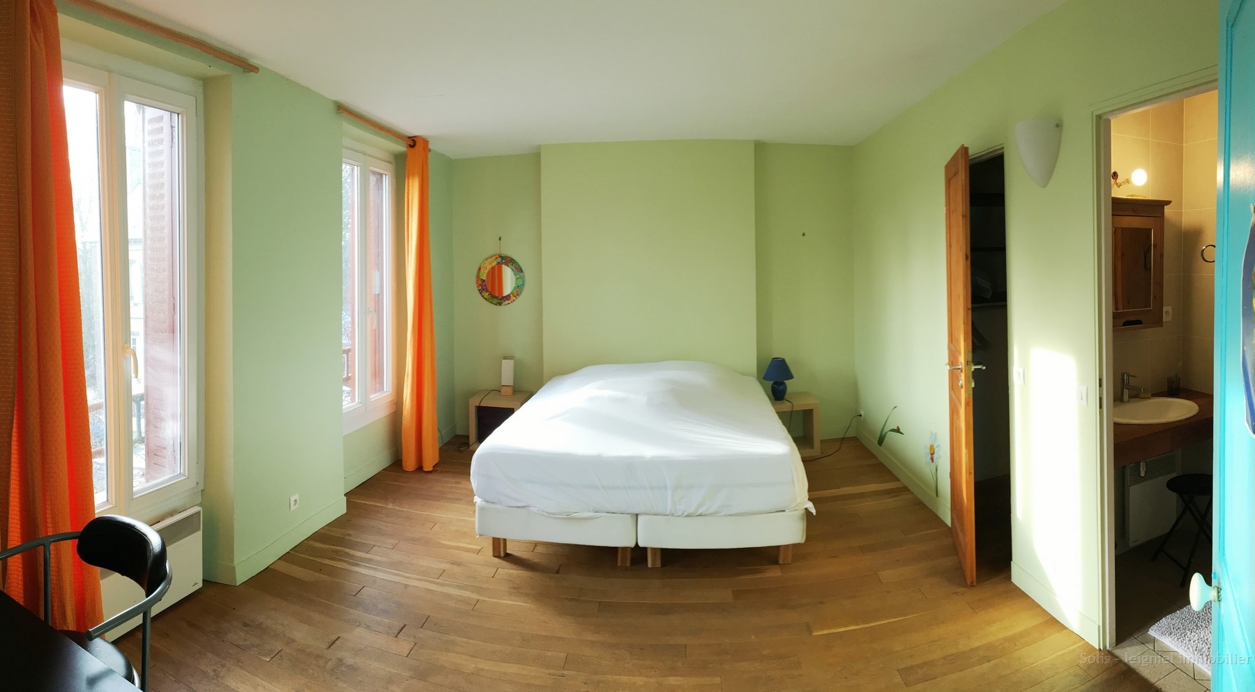 Parquet chêne sur tout l'étage et chauffage électrique dans chaque pièce.