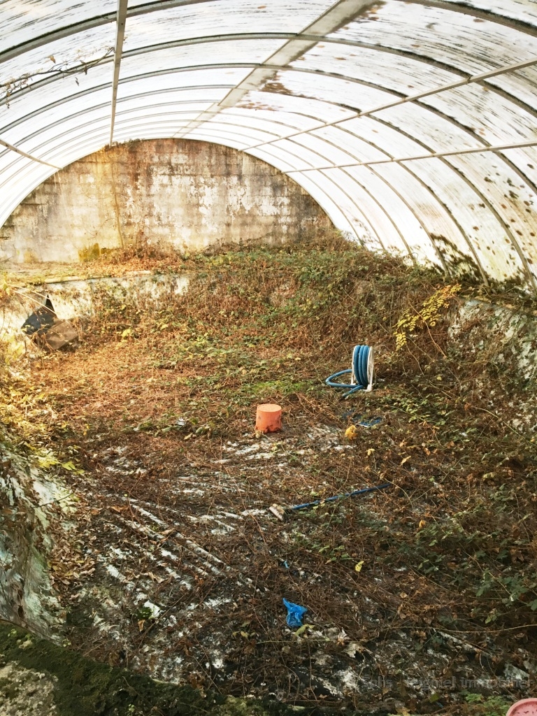 Ancienne piscine couverte à rénover au dos de la grange de 12m sur 6 et de 1.20 m de profondeur. ( prévoir liner et pompes).