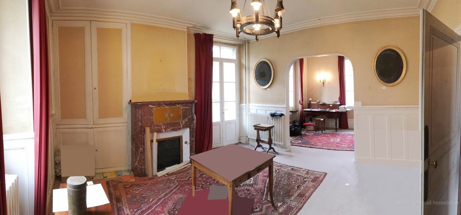 Agréable distribution pour le rez-de-chaussée avec son entrée desservant un double salon de 34m², ainsi qu'une salle à manger et une cuisine conviviale de 21m² ouvrant sur terrasse ou sur l'office (carreaux de ciment, parquet de chêne, belles cheminées de marbre rouge ou blanche, nombreuses boiseries et moulures) , WC.