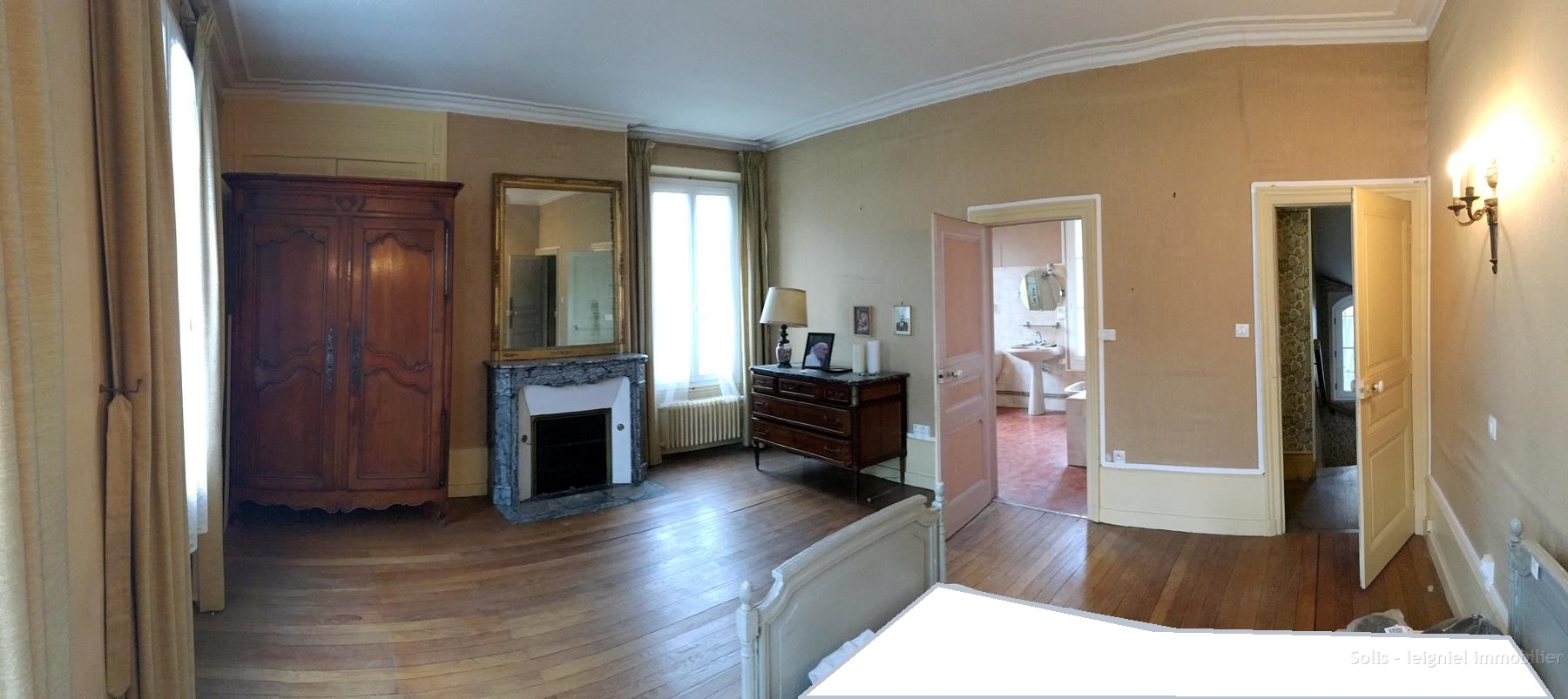Au premier étage, un palier dessert deux vastes chambres (25 et 23 m²) parquetées de chêne et agrémentée de belles cheminées et de grands placards en boiserie et 2 autres chambres et 2 dressings.